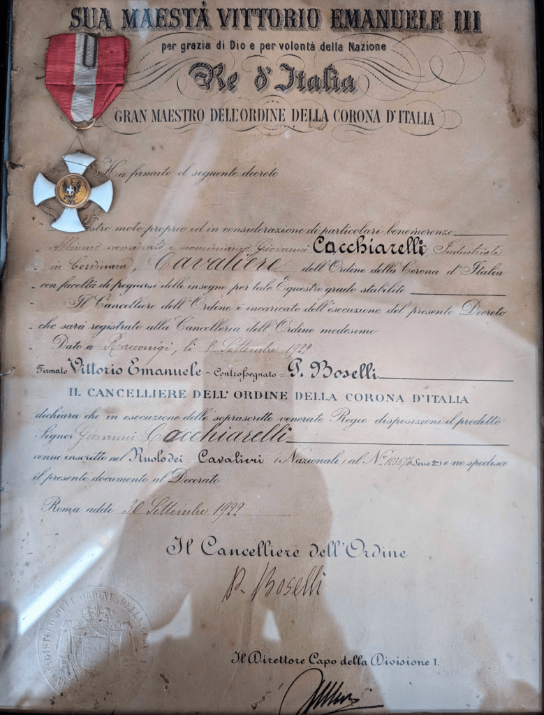 Don Giovanni Cocchiarelli’s Certificate of Knighthood, ca. 1928